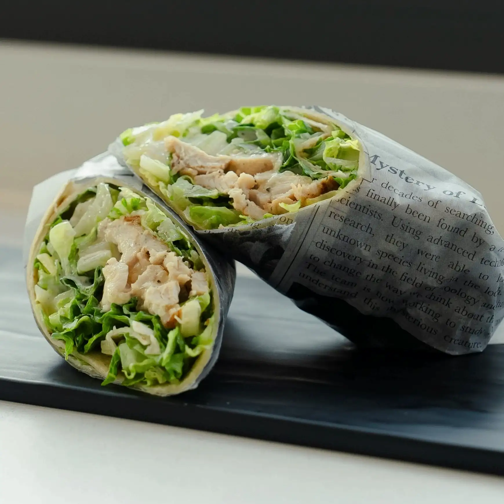 Grilled Chicken, Parmesan cheese, Lettuce, Caesar dressing on Tortilla