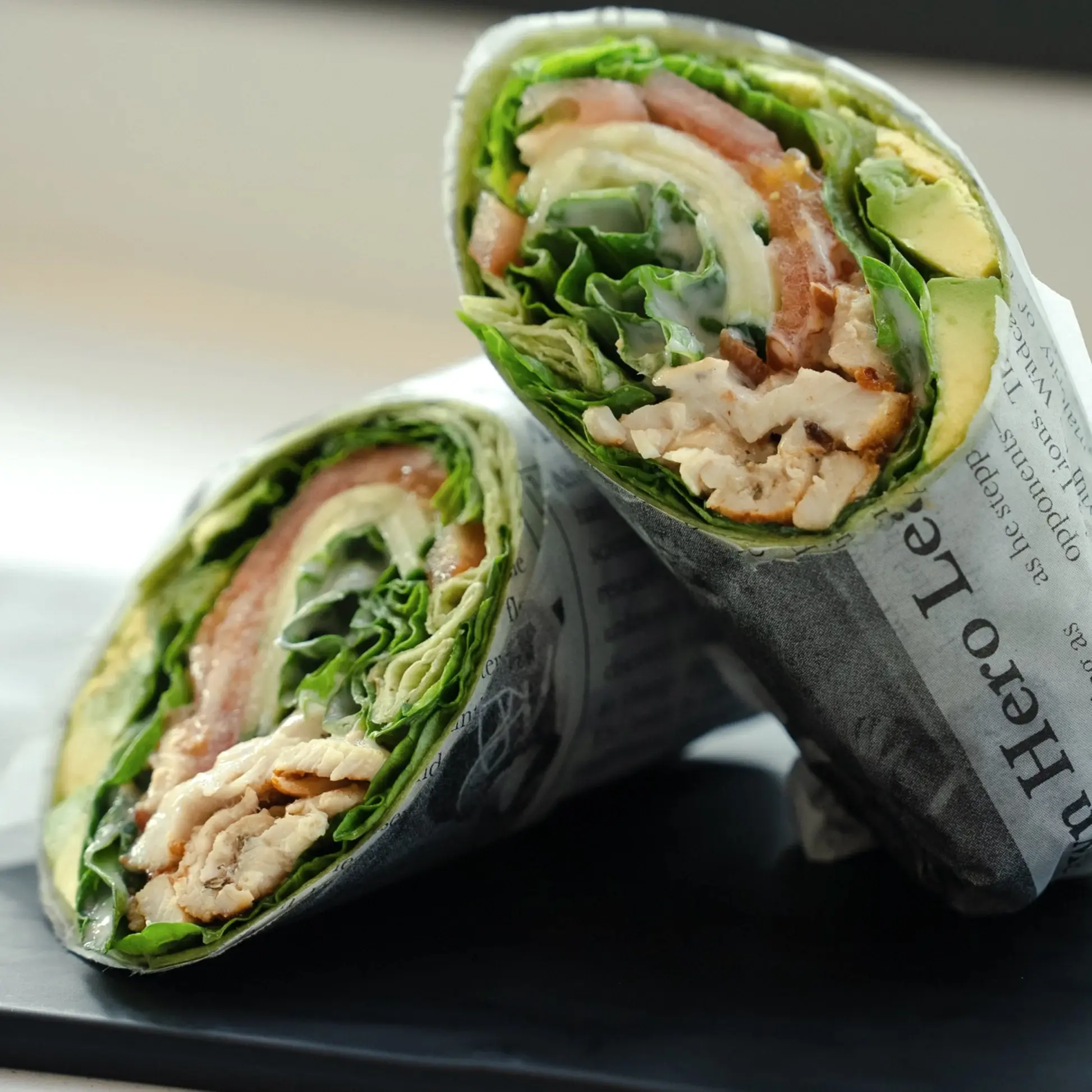Grilled Chicken, Bacon, Lettuce, Tomato, Avocado, cucumber, Ranch on Spinach Tortilla