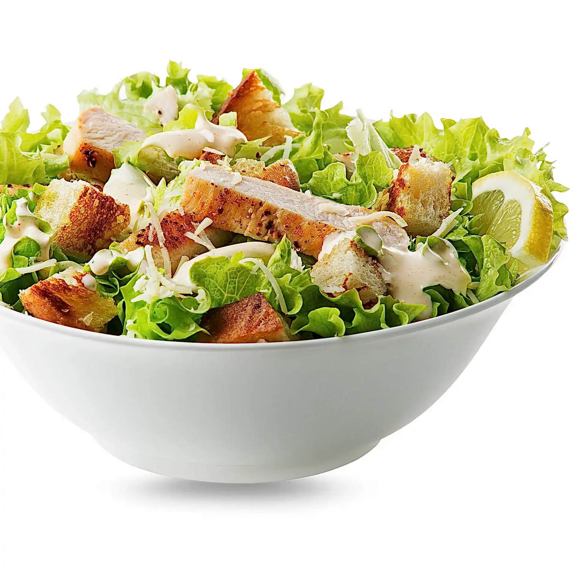 Chicken, Romaine lettuce, Parmesan cheese, Croutons, Caesar dressing