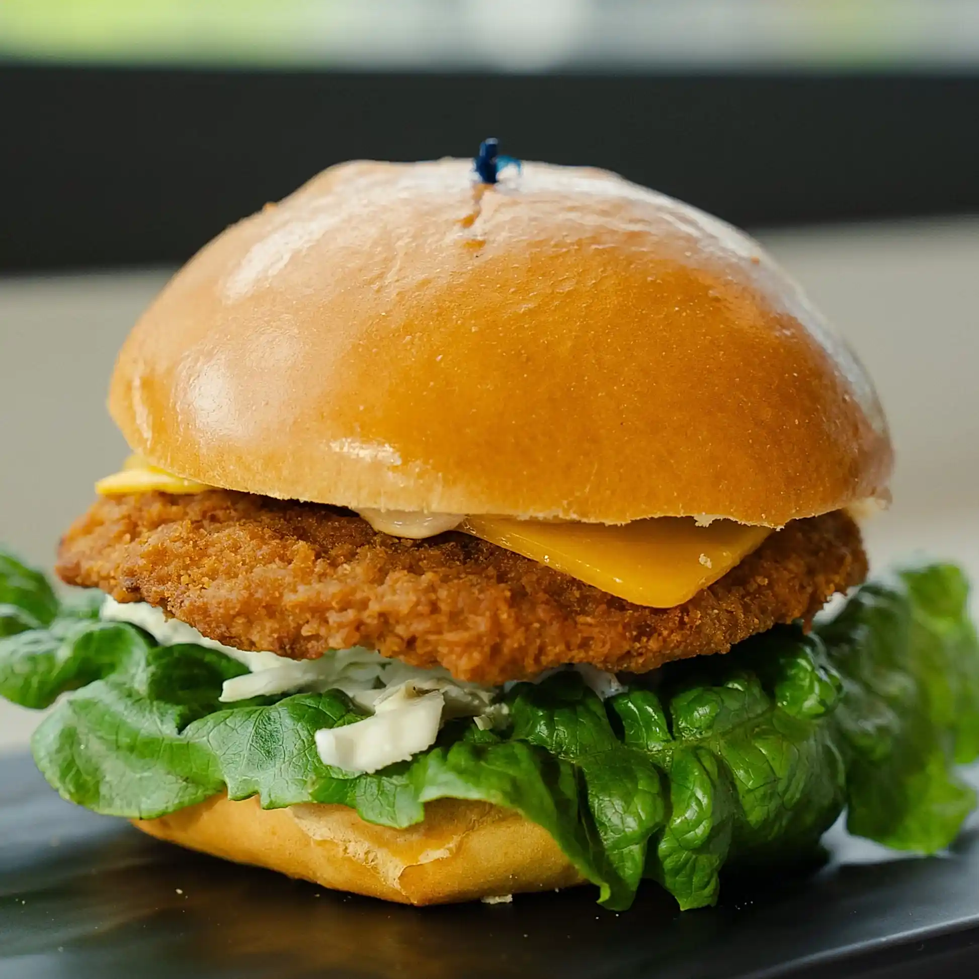 Panko breaded chicken breast with cilantro cabbage slaw, cheese, home made chipotle sauce on brioche bun.